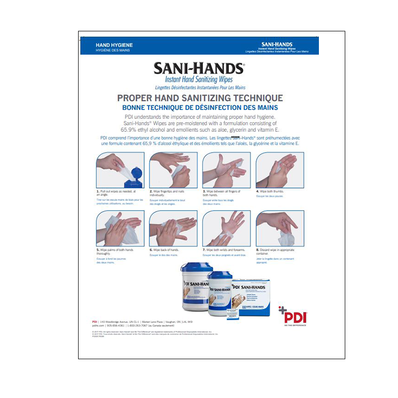 This instructions for use sign can be placed around the facility to encourage proper hand hygiene technique with the Sani-Hands wipes. Hang close to where the product is placed/used throughout the facility to reinforce appropriate use by staff, patients and visitors.
